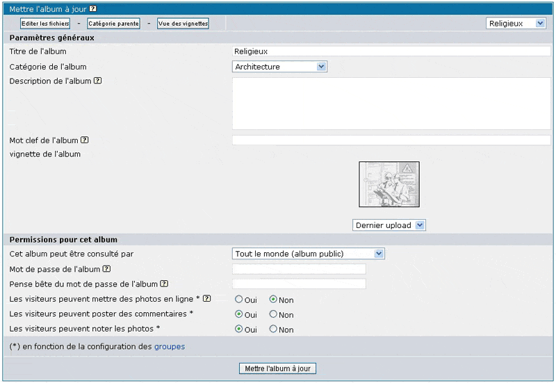 Lorsque vous êtes Administrateur, cliquez sur "albums" dans le menu outils, vous pourrez voir le Gestionnaire d'album.